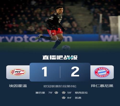 体育播报1月29日宣 北京时间1月29日凌晨4:00,欧冠联赛阶段第8轮,拜仁在飞利浦大球场客战埃因霍温。上半场两队都没有特别好的机会,暂时0-0战平;下半场伦纳特·卡尔助攻穆西亚拉破门,塞巴里爆射扳平,凯恩建功,补时阶段毛罗·儒尼奥尔两黄变一红被罚下,最终拜仁2-1埃因霍温,欧冠联赛阶段第二直接晋级十六强。
