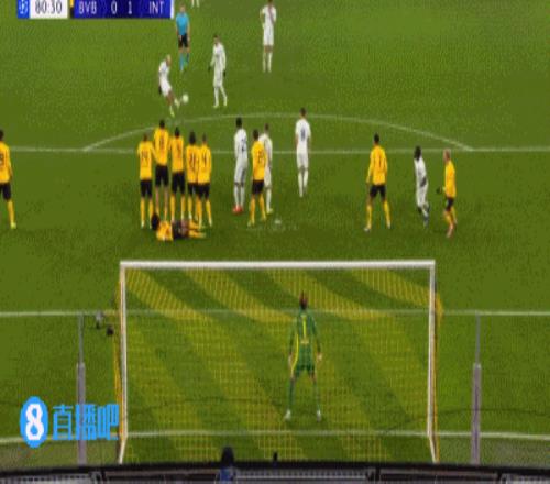 第80分钟,迪马尔科主罚任意球直接射门!皮球越过人墙下坠打进球门右侧!国米1-0领先多特↓
