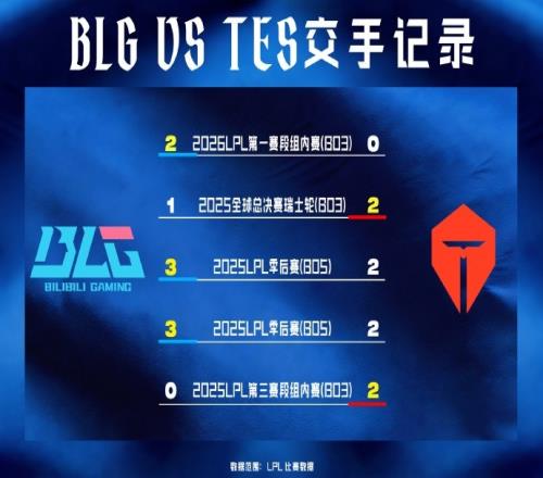 BLG和TES近五场交锋中,无论BO3还是BO5,TES有四场均率先在“前三小局”(即BO3全场或BO5的前三小局)中赢下两小局。